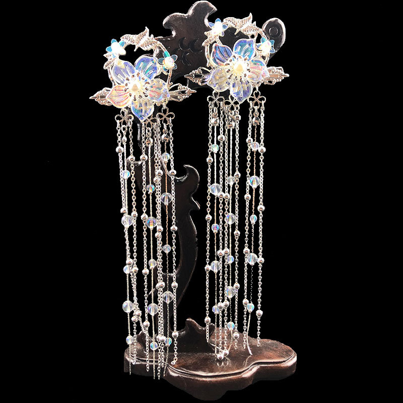 Ancient Hanfu headdress Colorful glass super hair clip Ancient style edge clip hair accessories u hairpin suit Fairy walk hair clip