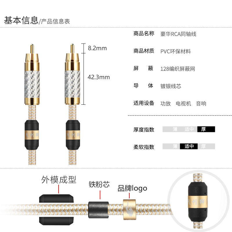 Golly Lion Hair Burning Class RCA Coaxial Audio Line SPDIF Single Lotus Heads Public on Low Sonic Gun Sound