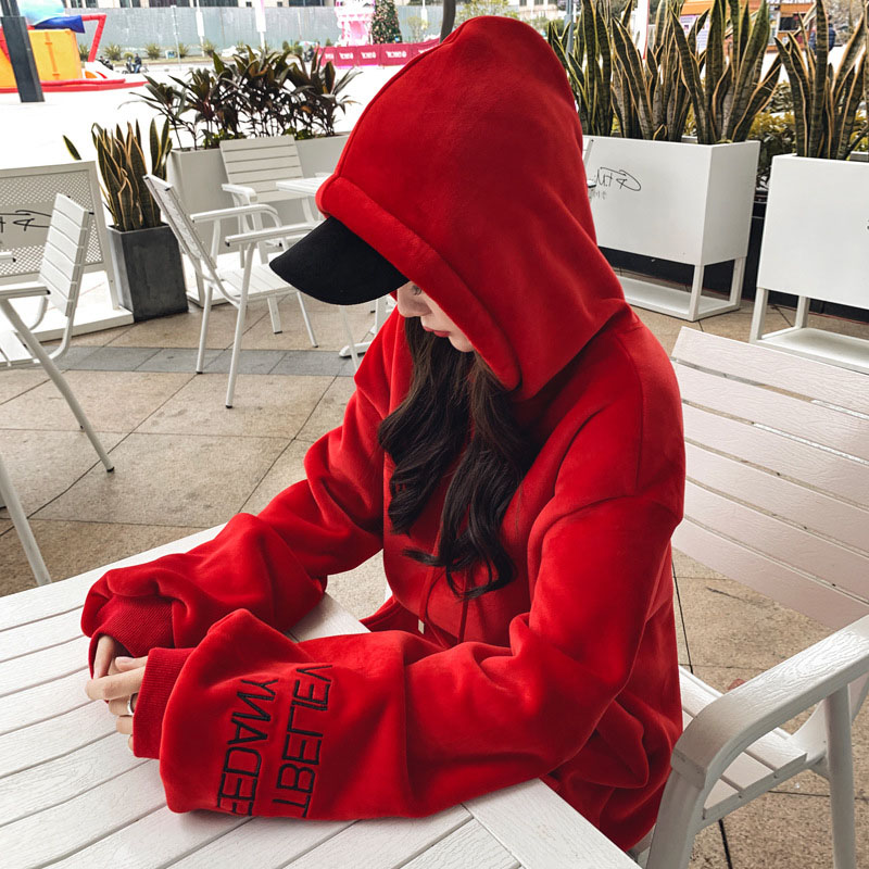 Red gold velvet sweatshirt 2022 new autumn and winter loose Korean version plus suede thickened ultra-fire cec jacket foreign woman