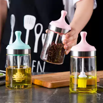 Moisture-proof seasoning box glass household sealed seasoning bottle jar salt Jar Kitchen sugar monosodium glutamate bottle jar brush oil pot set