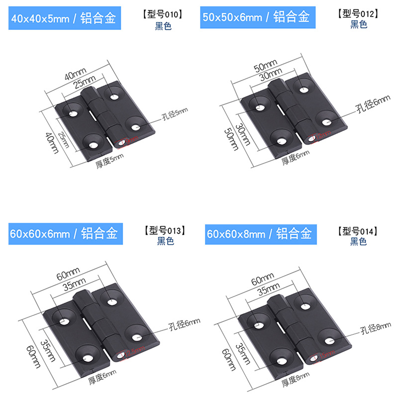 40 40 * 40 * 5 (black) 50 * 50 * 6 (black) 60 * 60 * 6 (black) 60 * 60 * 8 (black) 40 * 40 * 5 (silver)