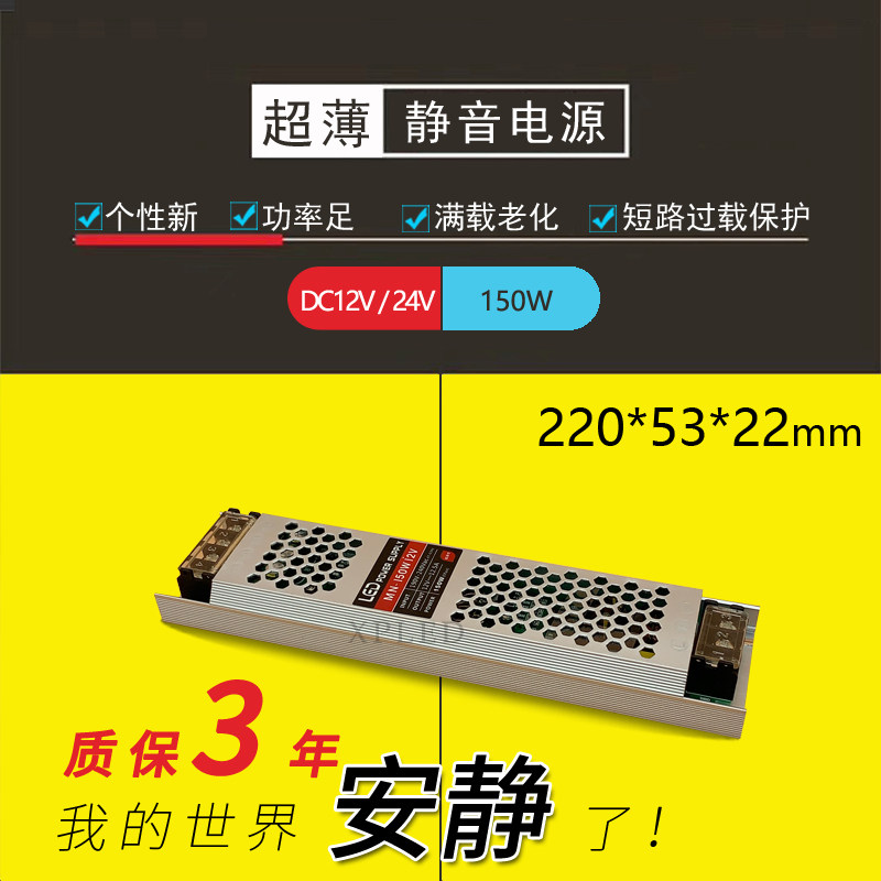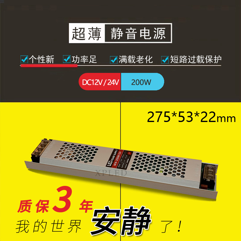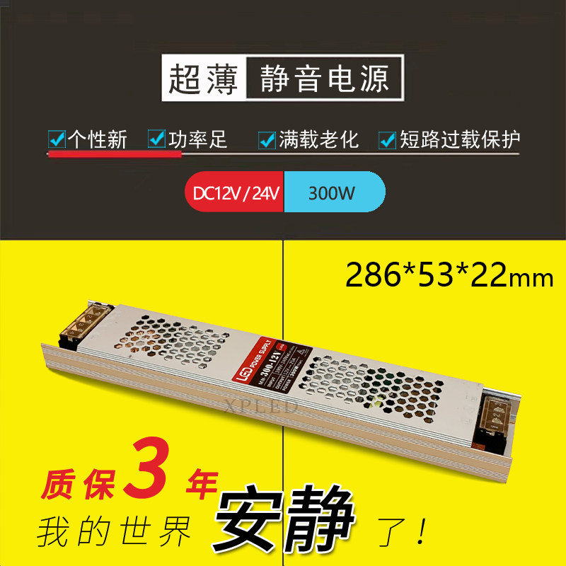 LED ultra-thin mute switching power supply 400W12V signboard light box luminous character monitoring light belt with 24V transformer