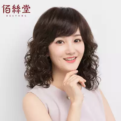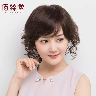 Basitang real hair wig female long hair set short curly hair middle-aged and elderly mother wig wool roll real hair Silk