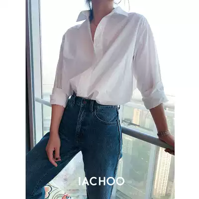 Iacoo cold wind loose lazy wind design sense niche no ironing cotton white shirt long sleeve women
