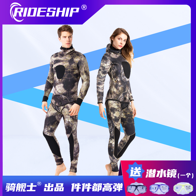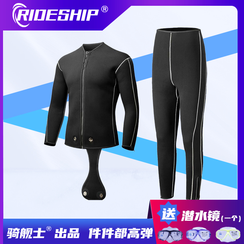 Diving suit Male professional warm deep diving anti-chill wetsuit 3-5-7MM split semi dry thickened floating hunting fishing suit