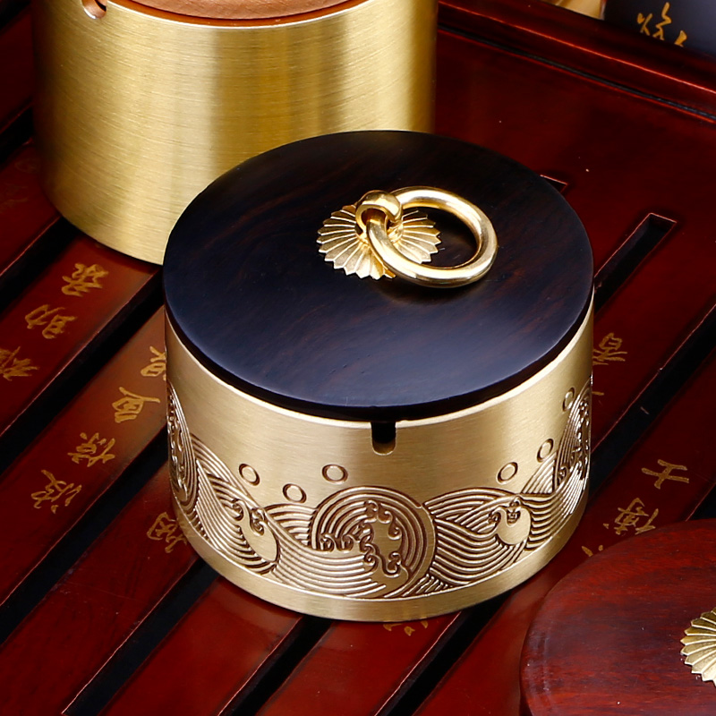 Pure copper ashtray with lid High-grade creative car business living room household handmade new Chinese brass ashtray