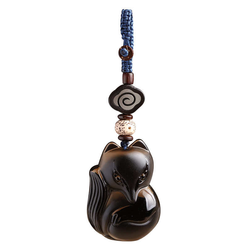 Natural tea crystal fox fox key buckle pendant handmade retro Chinese wind personality Benz BMW car key chain