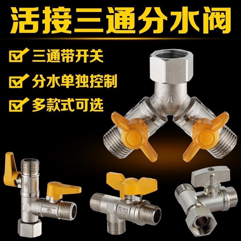 Double-control outlet one in and two out with live interface four-way one-way two-way diverter valve three-way angle valve accessories