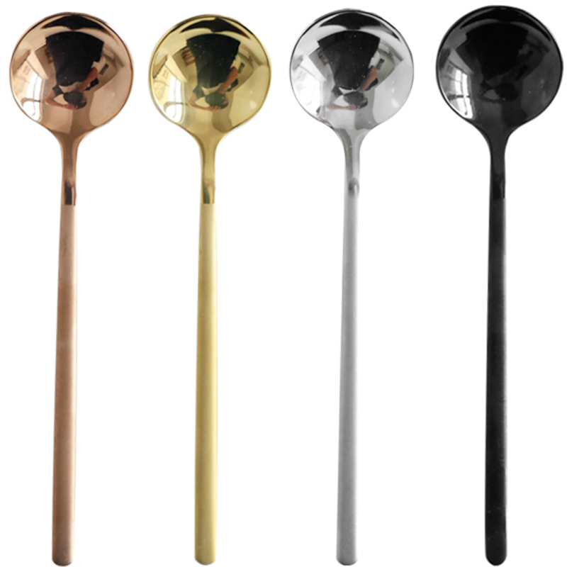 Wooden 304 stainless steel dessert spoon coffee stirring spoon home creative western food round head small spoon shooting props
