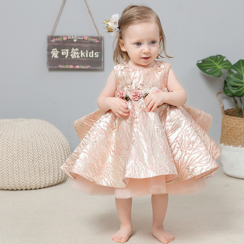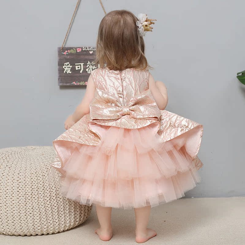 Haute Couture Baby Dress Pink Baby One Year Old Girl Birthday Princess Dress 2020 Summer New