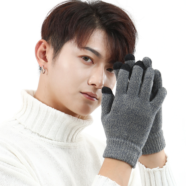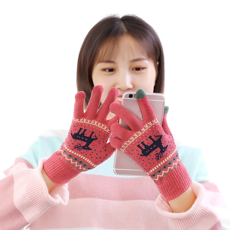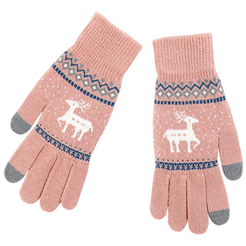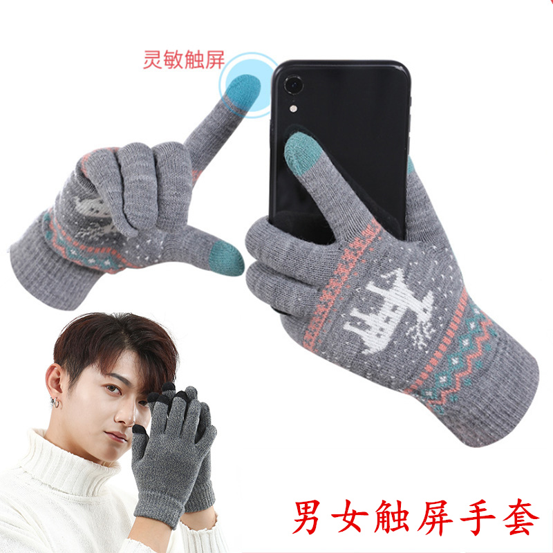 Touch screen men and women knitted gloves female five-finger autumn winter plus suede thickened warm gloves students cute riding windproof