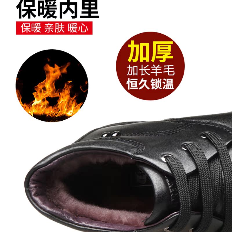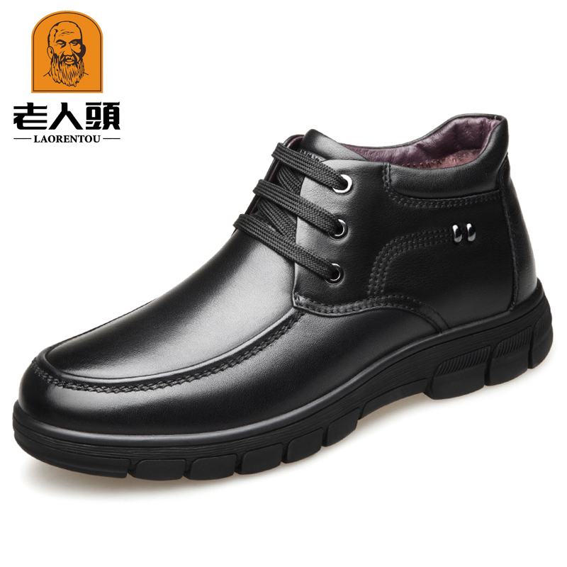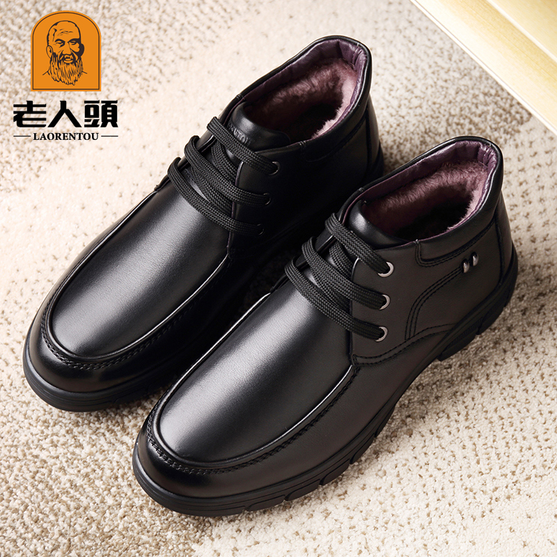 Old man's head winter plus velvet leather men's shoes high-top warm cotton shoes dad shoes middle-aged and elderly wool casual leather shoes