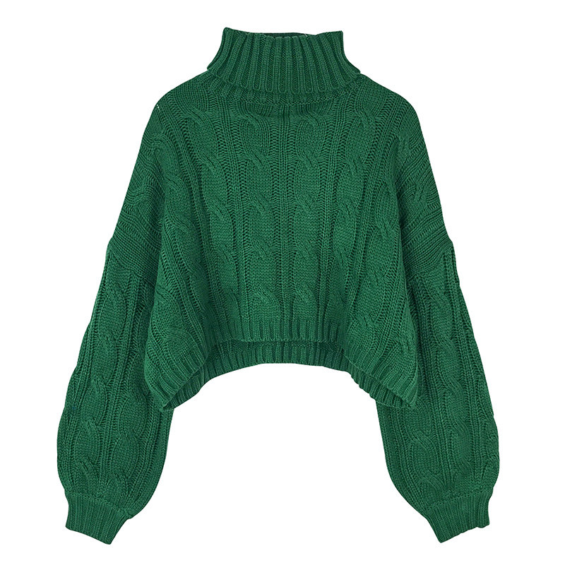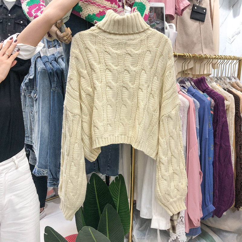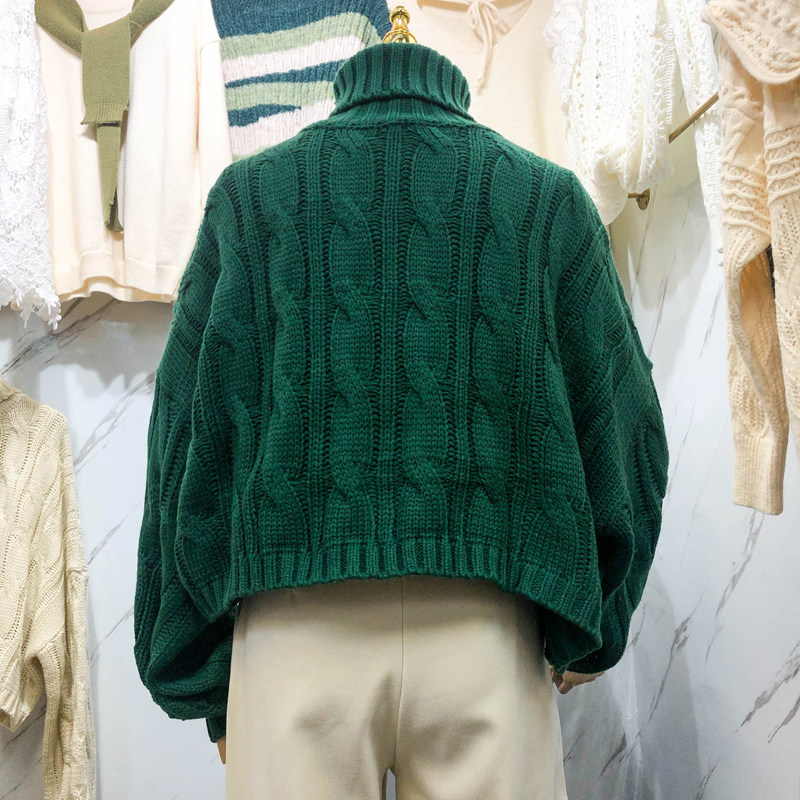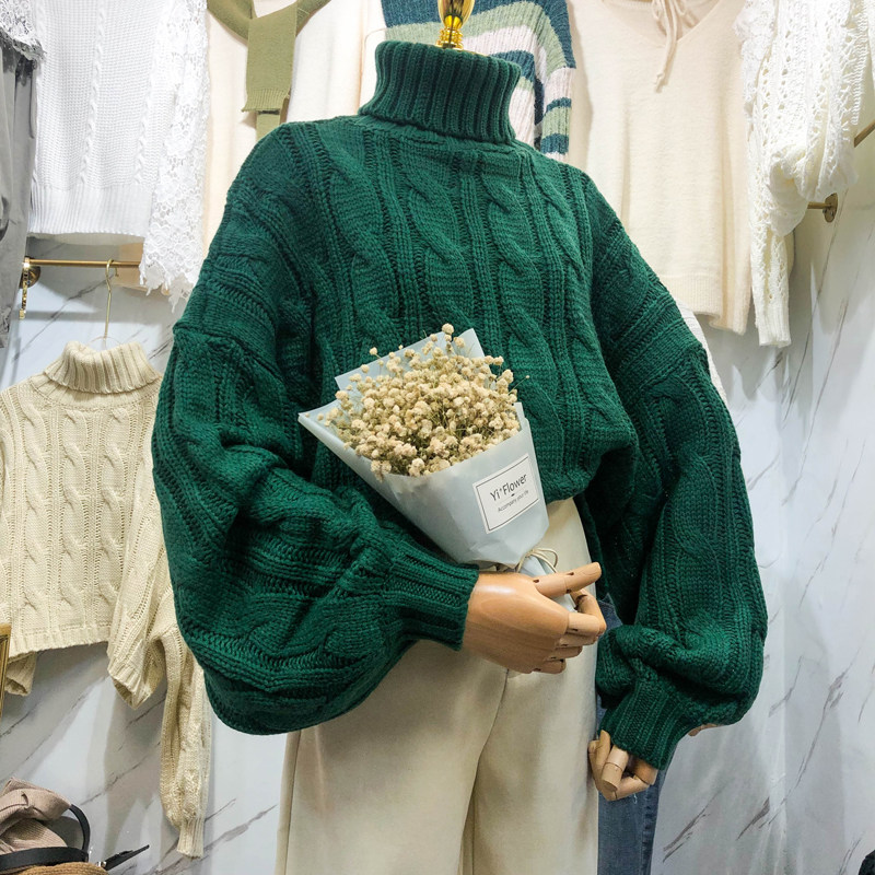 2021 autumn and winter turtleneck pullover lazy wind loose outer wear thickened retro twist thick line sweater sweater women