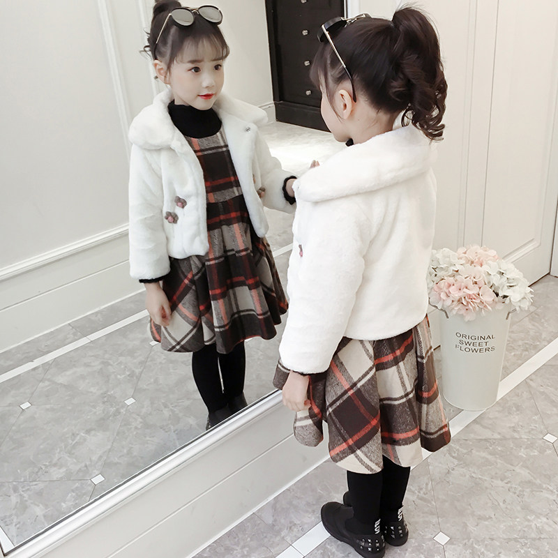 3 Children 4 Girls Dress 5 Autumn and Winter Dress 2021 New Princess Dress Plus Velvet Thick 6 Years Old Western Style Suit
