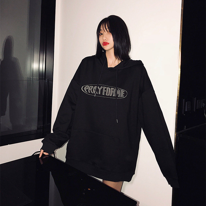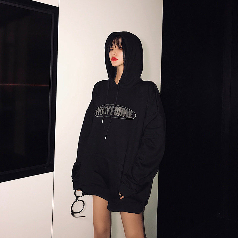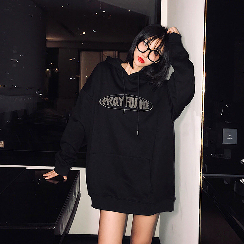 2019 new autumn and winter ins super hot plus size women's loose plus velvet hooded sweater women's lazy wind mid-length tide