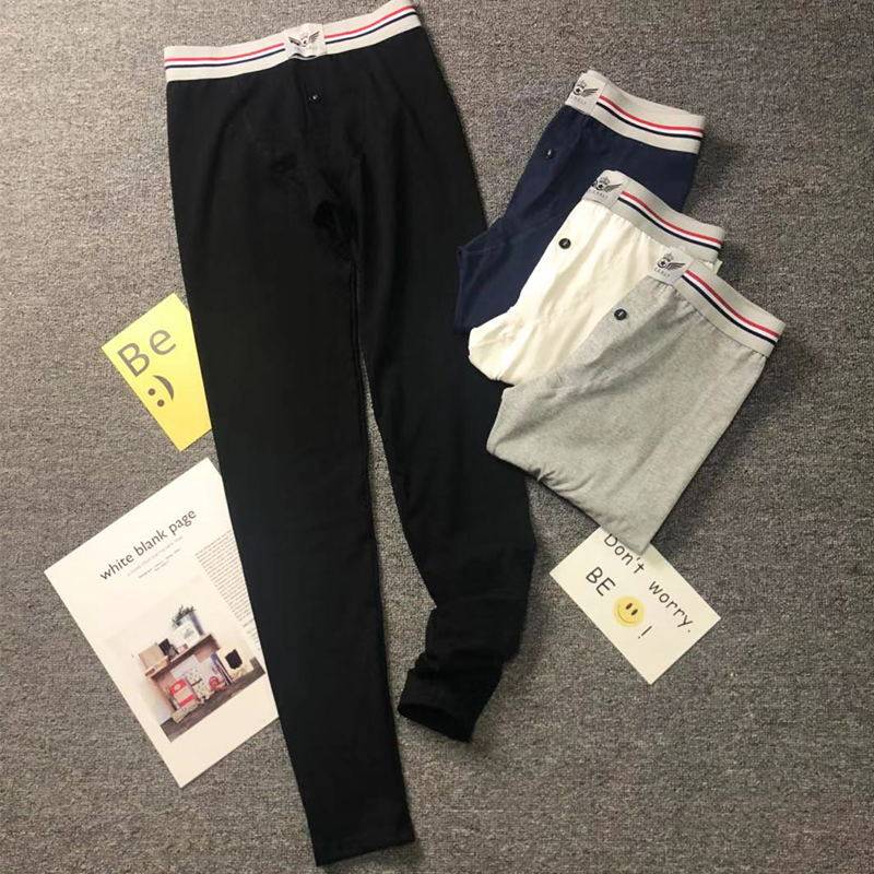 Lady handsome T sanitary pants pure cotton Les neutral wide edge mid-waist tide cards large size Slim Movement Warm Pants Internal Lap Pants