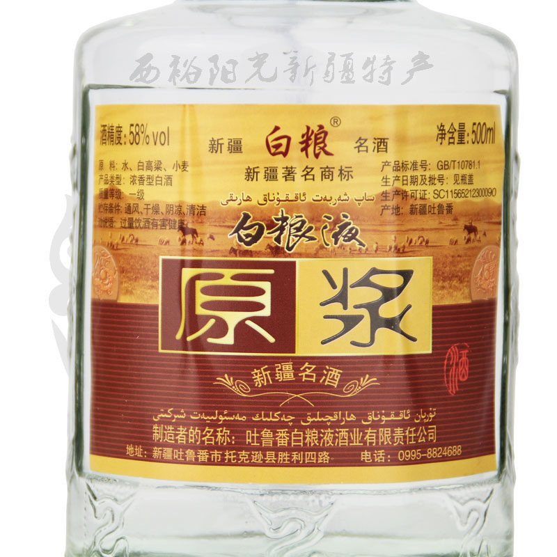 Xinjiang Liquor Name Wine Turpan White Grain Liquid Raw Pulp Wine 58 Degrees Height White Wine Intense Aroma Type Pure Grain Wine