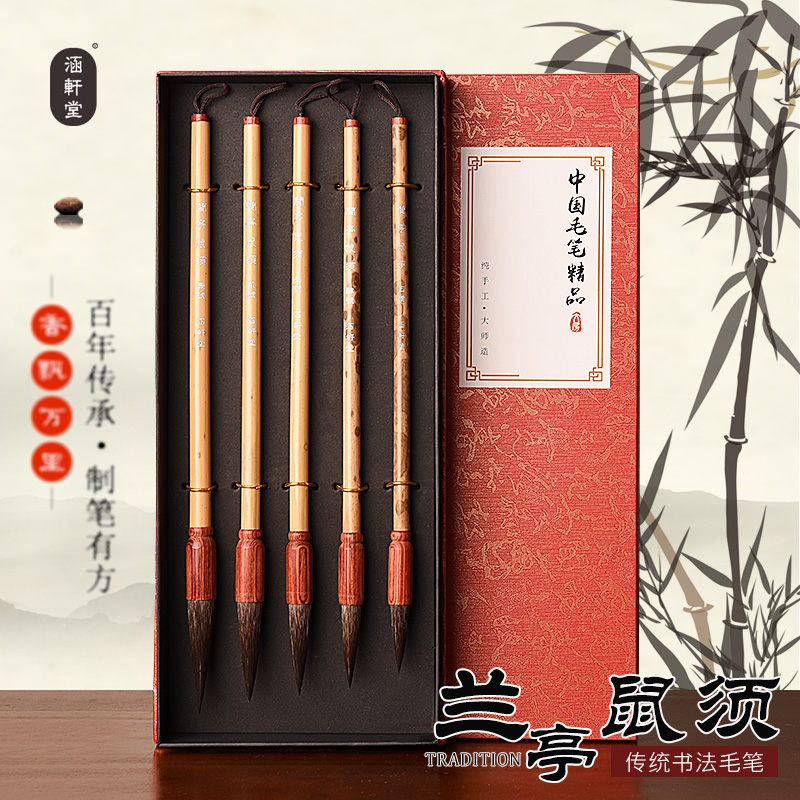 Traditional mouse beard brush mouse beard hair gray tail adult brush wolf hair Xiangfei bamboo calligraphy brush set beginners regular script cursive script Lanting sequence Chinese painting medium and large regular script brush