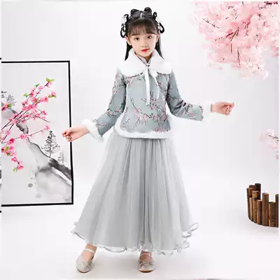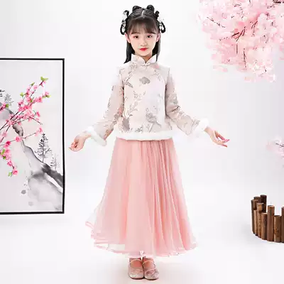 New Year's clothing New Year's clothing Girls Hanfu Chinese style autumn and winter clothing festive plus velvet thickening children's Tang suit suit New Year's Day