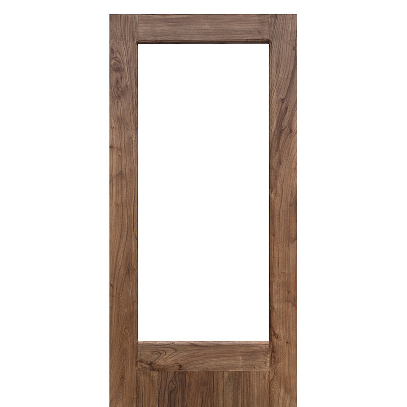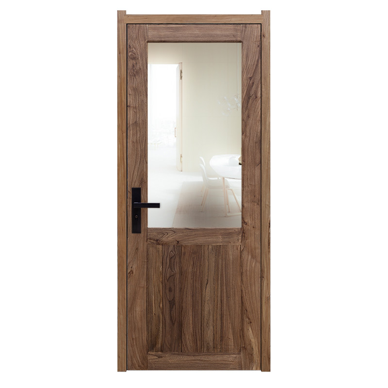 Custom solid wood door Elm interior door Single fan flat open glass wooden door door head shop decoration wooden door good light permeability