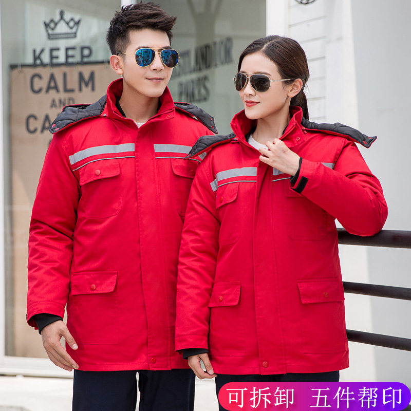 Winter worker cold-proof cotton clothing Sanitation cleaners warm cotton clothes thickened highway keeper reflective strips cotton coat