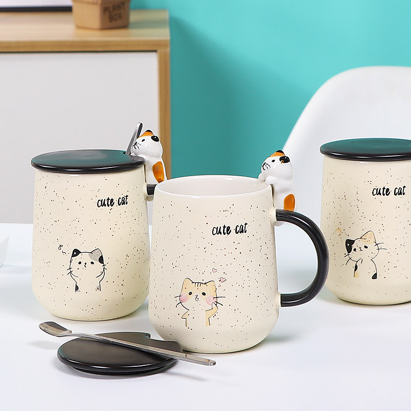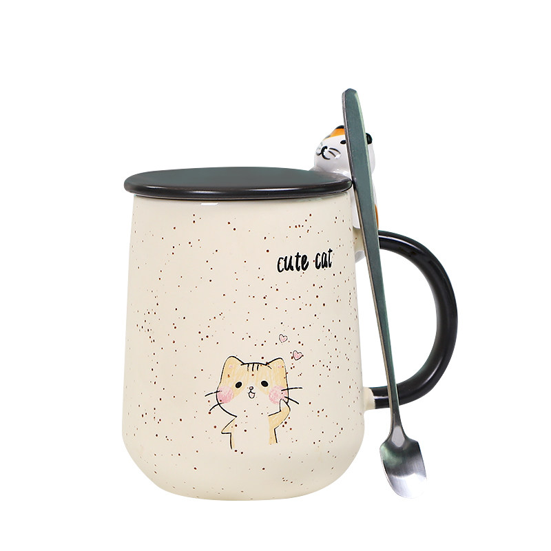Mug creative personality trendy ceramic cup female cute teenage girl Mark cup with cover spoonful of approbation lovers water glass-Taobao