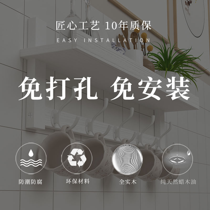 Wall shelf Wall hanging bedroom solid wood wall hanging Living room dining room wall creative wall decoration Free punch rack