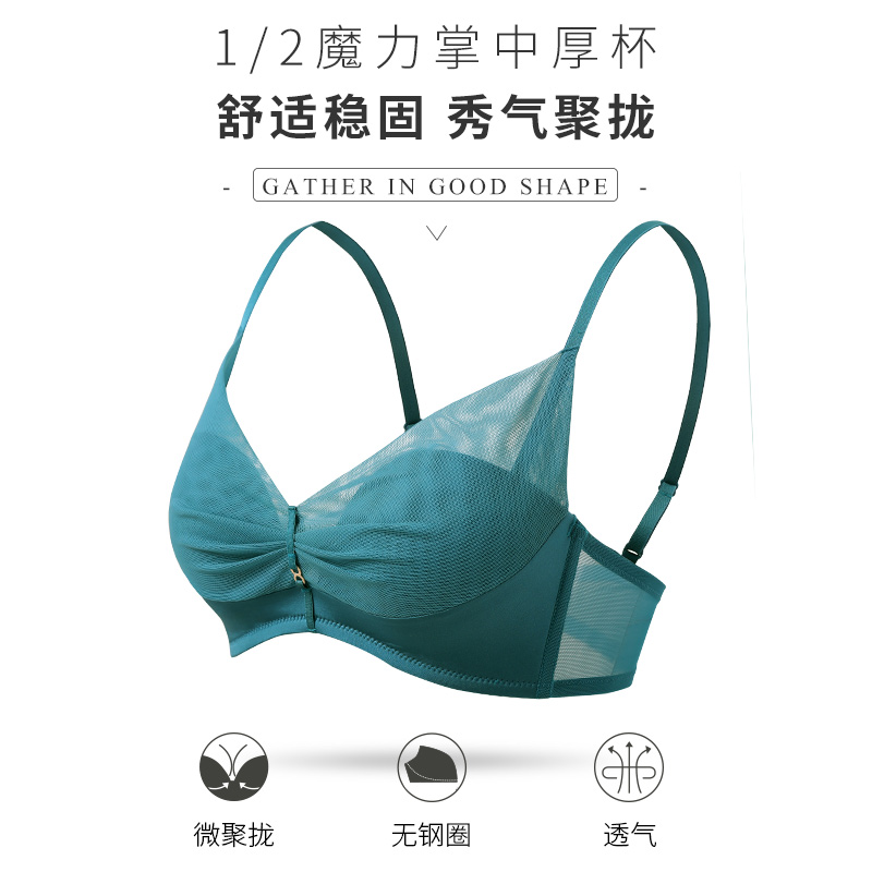 Man Quality Underwear woman No steel ring to woo small breasted sexy lace ink green bra to receive the breast milk adjustment bra