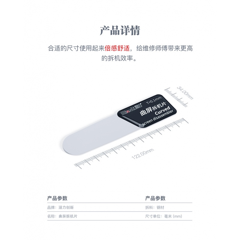 Potential and innovative curved screen mobile phone disassembly piece crowbar metal warping piece mobile phone repair middle frame screen divider