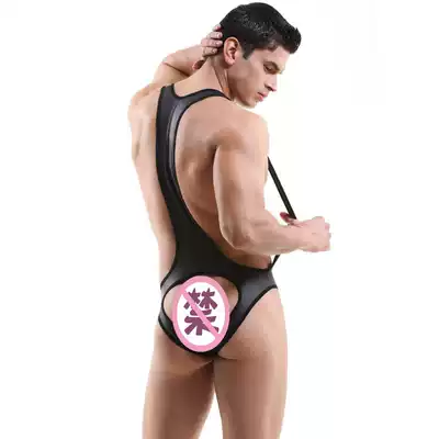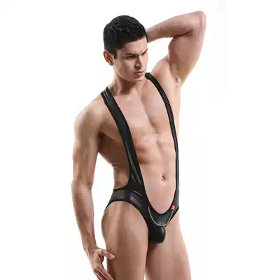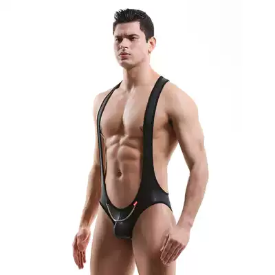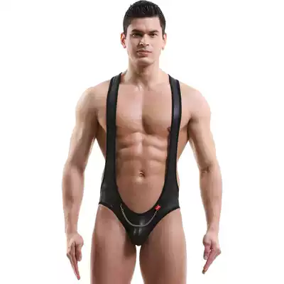 Sexy underwear, men's sexy leather clothes, men's sexy pajamas, sexy men wearing men's passionate one-piece to open the file
