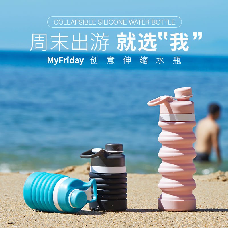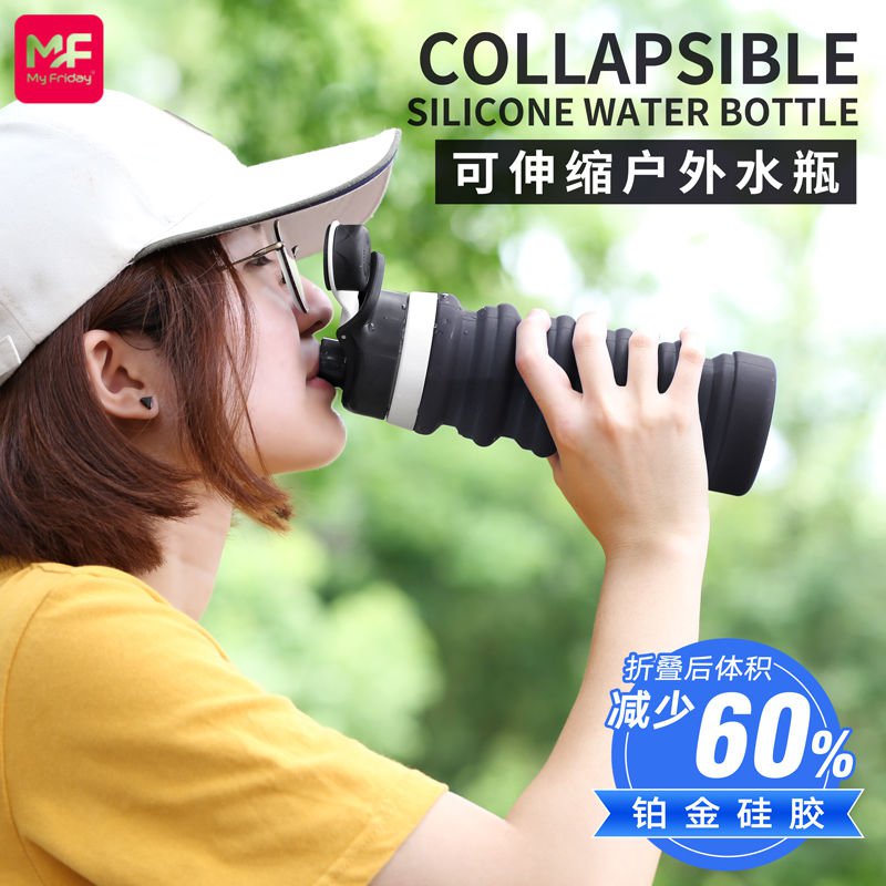 Personality folding telescopic large capacity children drinking water cups male and female students Korean version cute tennis red silicone anti-fall