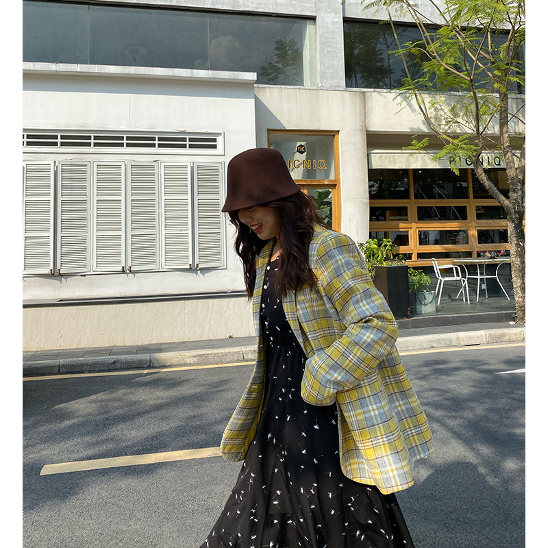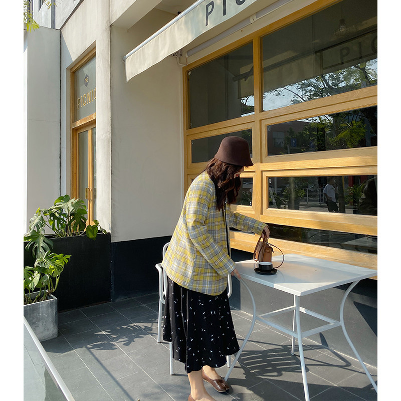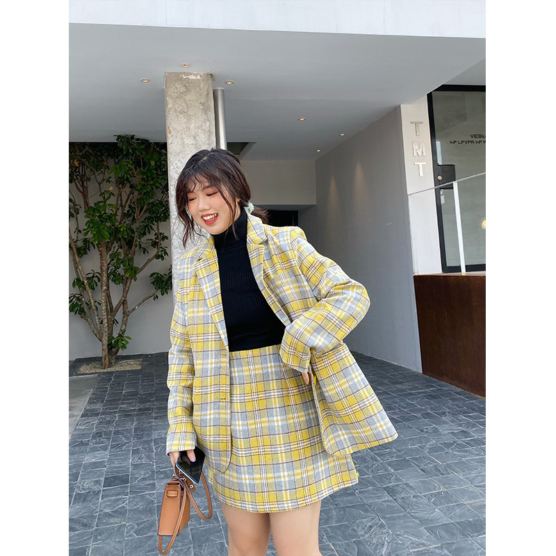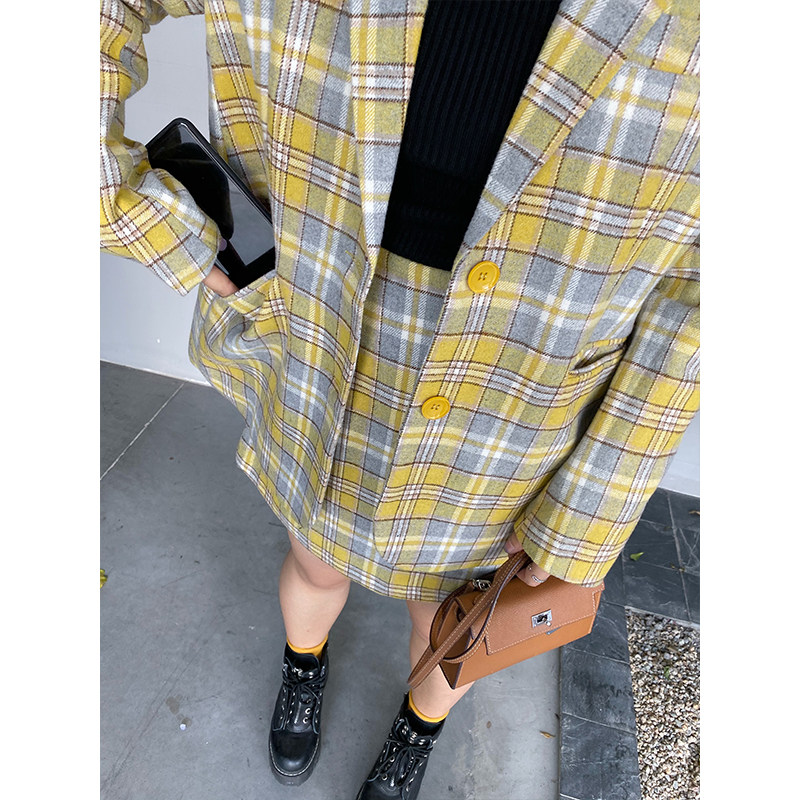 Jumi slightly fat mm winter size wool yellow plaid Yayfeng fat sister slim fat man suit female