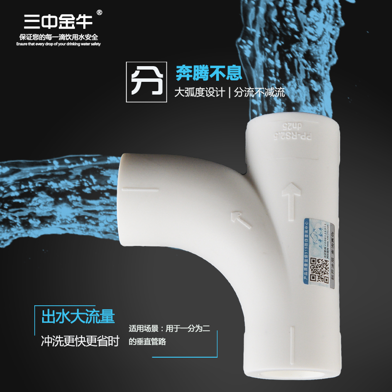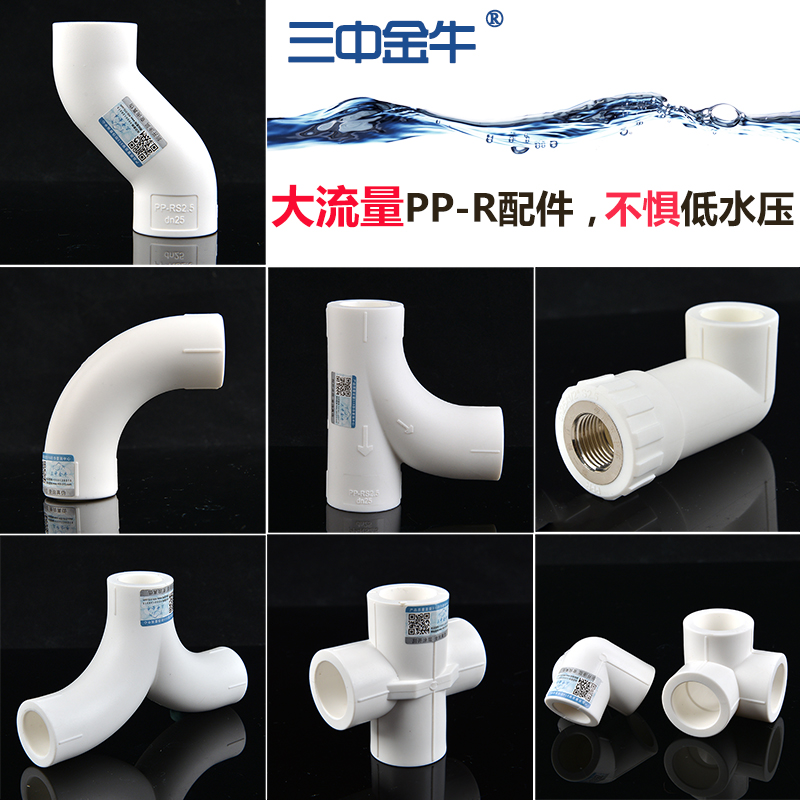 PP-R water pipe fittings bridge elbow pandemics smooth water herringbone three-way backwater bend 4 pipes with thickened joints