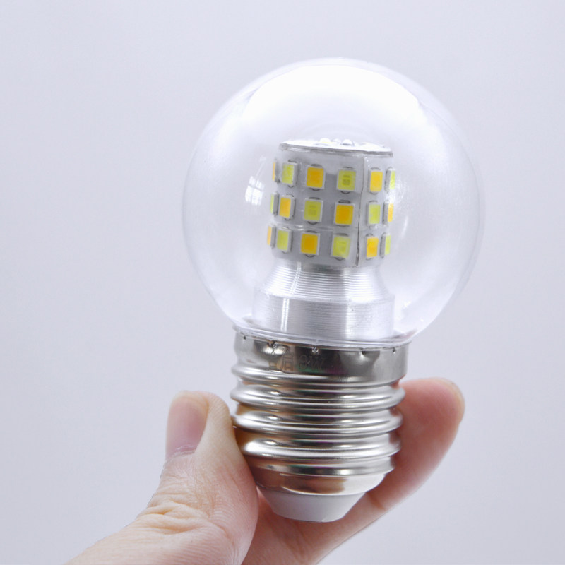 LED bulb energy-saving e27 screw mouth three-color dimming 5W7W warm white light household transparent ball bubble magic bean light source