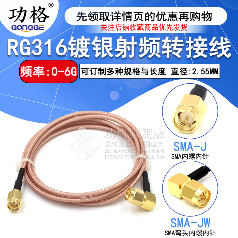 SMA transfer line RF line RG316 extension line Bend male head inner pin hole to SMA straight male head SMA-JJ