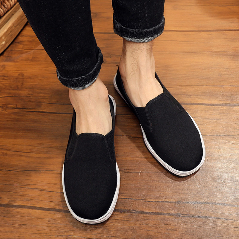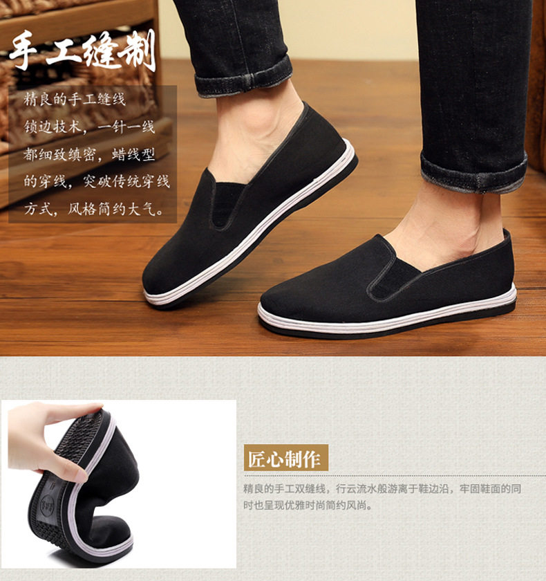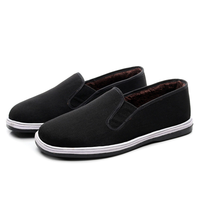 Winter old Beijing cloth shoes men's warm plus velvet cotton shoes non-slip wear-resistant black cloth shoes handmade lasagna bottom loafer shoes