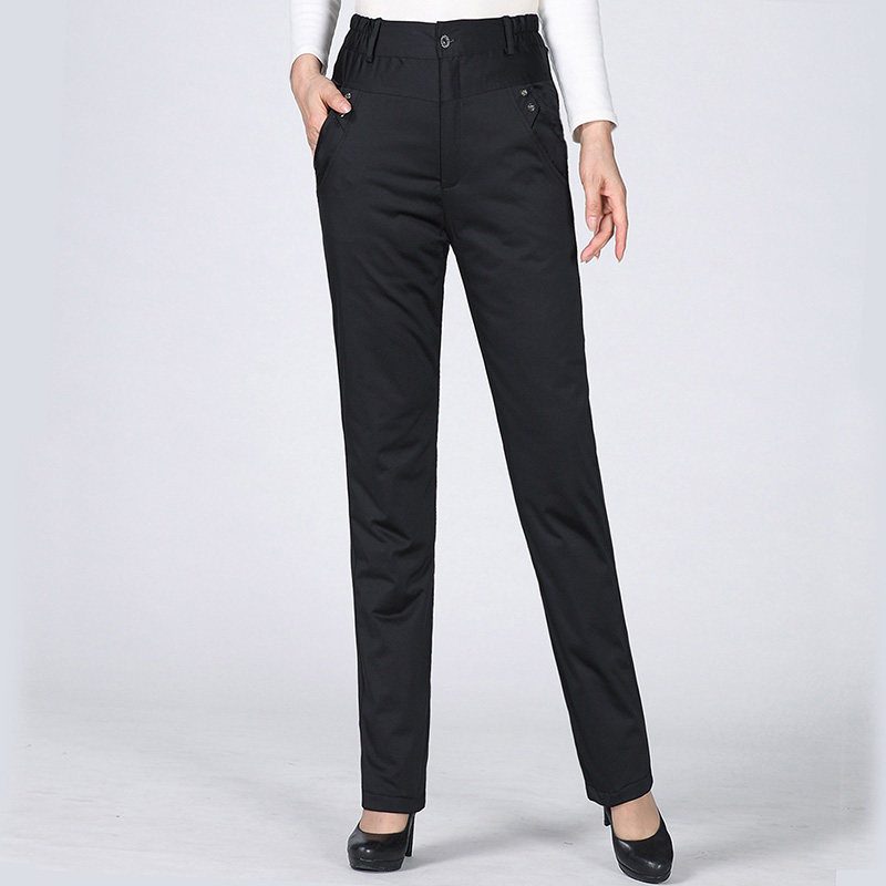 Down pants women wear straight high waist warm thin thickened large size white duck down winter middle-aged mother cotton pants