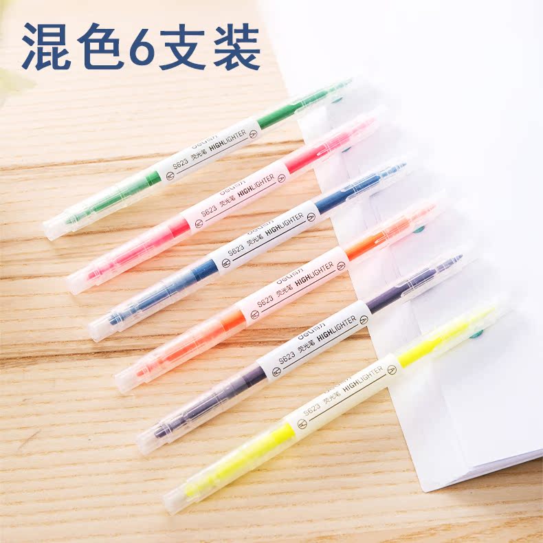 (6 Load) Able S627 fluorescent pen Colour thickness Double head scratchmark pen Pale Pink Note Pen