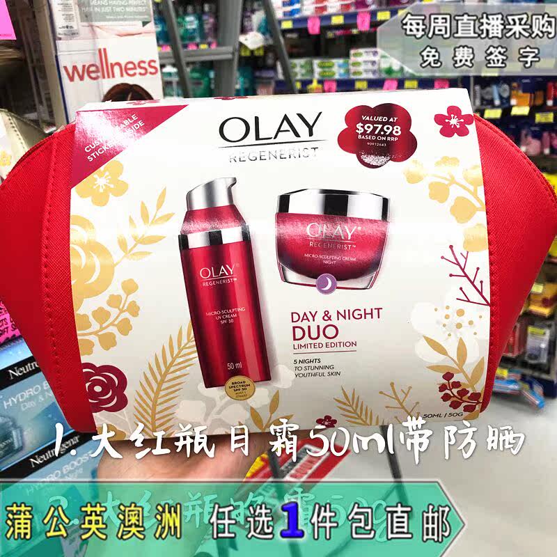 Australia Olay Yulan oil freshman bright white three sets of big red bottle day cream late creamy creamy base liquid Christmas new suit