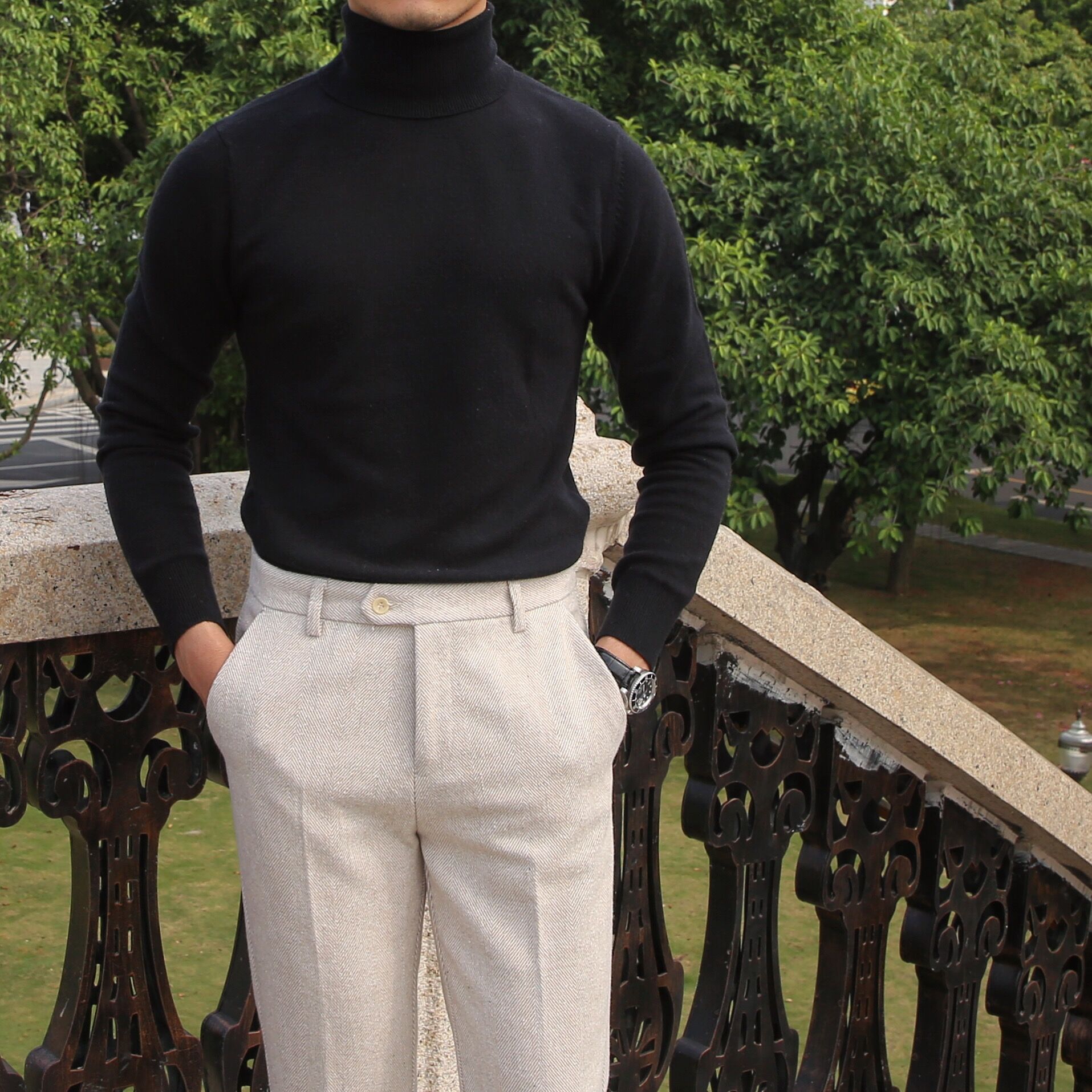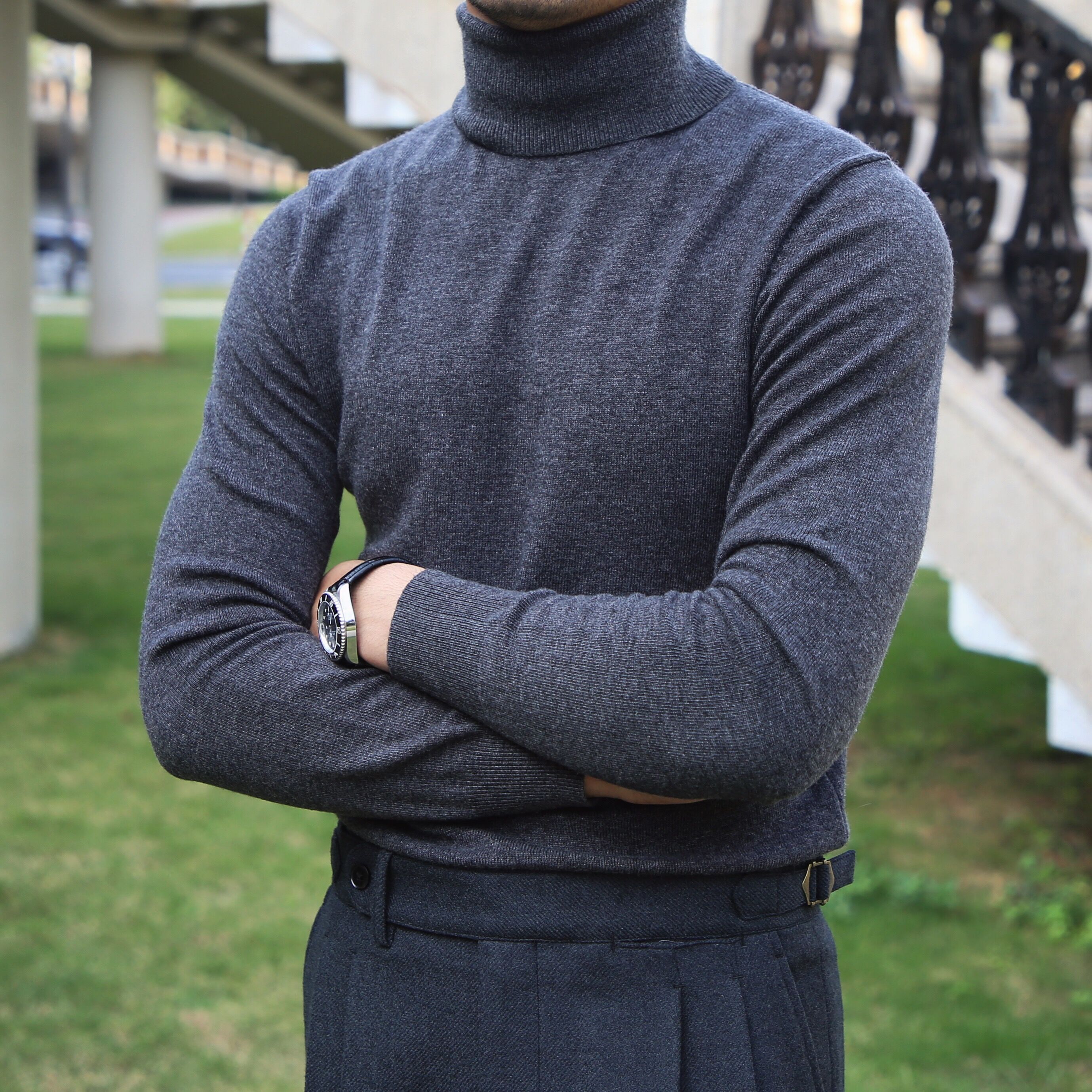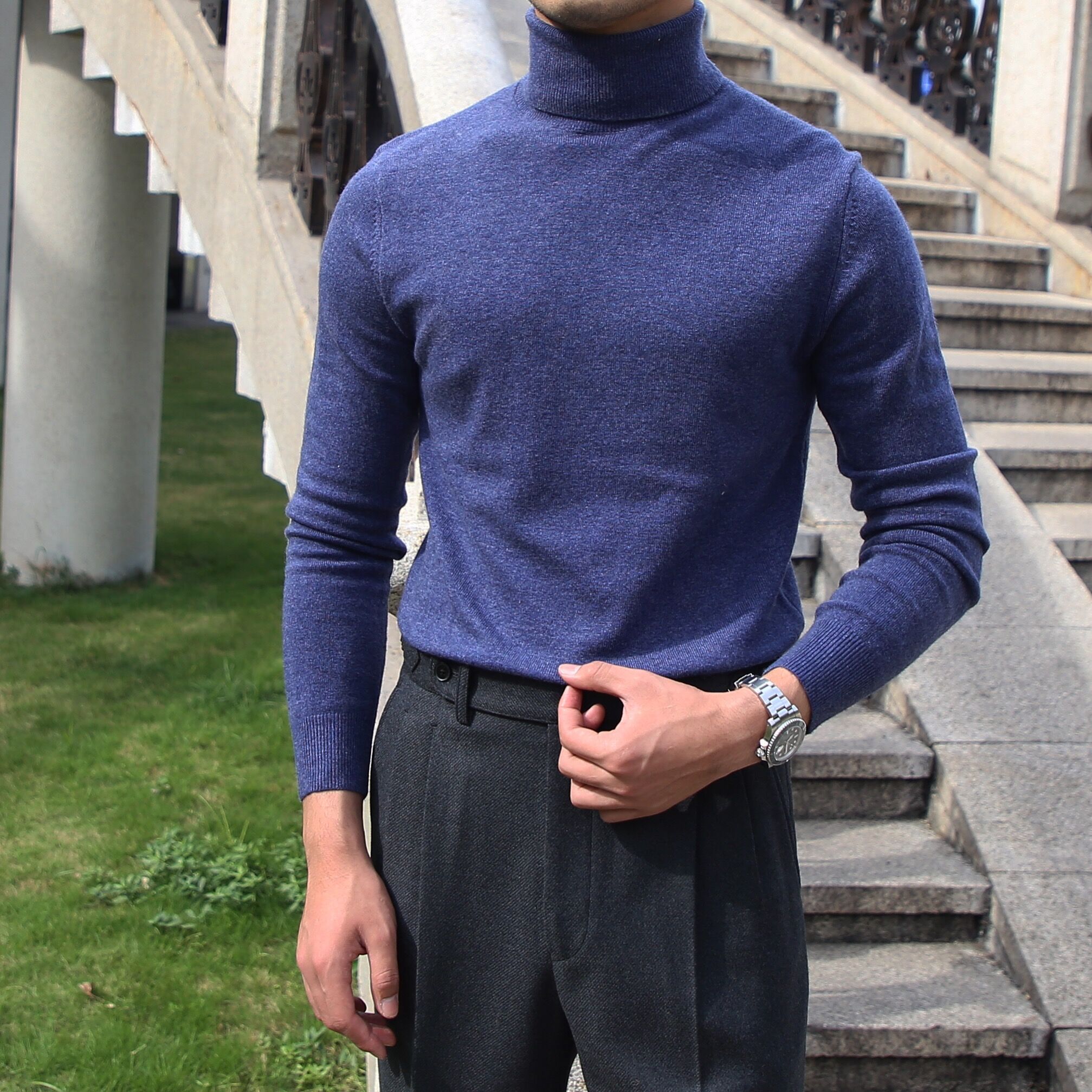 Deer Three Mr. Han version Trend High collar pure color sweater Inren autumn Winter warm and warm in youth wool-knitted sweatshirt for men