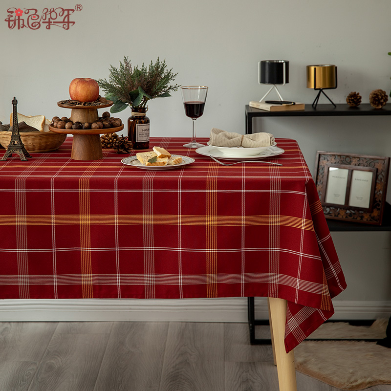Red British plaid fabric tablecloth Wedding dining table cloth Rectangular coffee table tablecloth tablecloth TV cabinet cover cloth customization