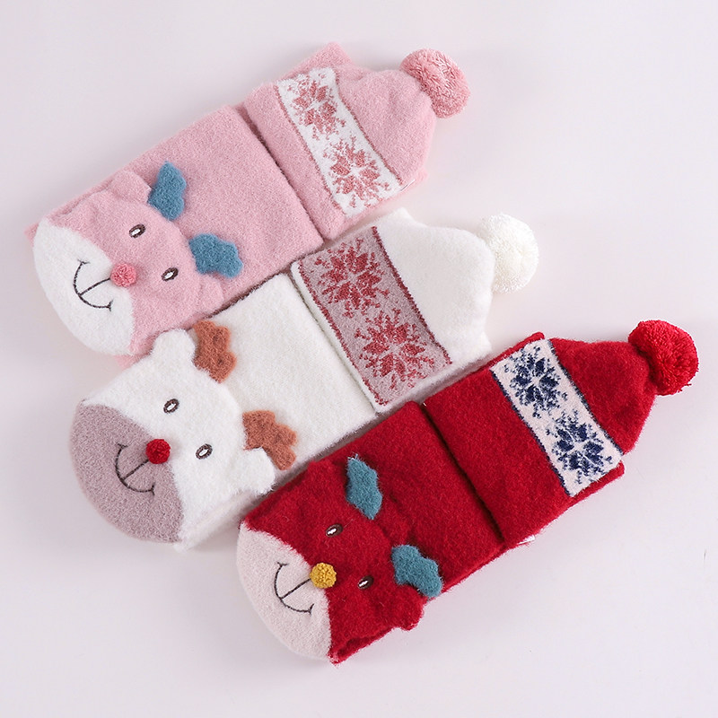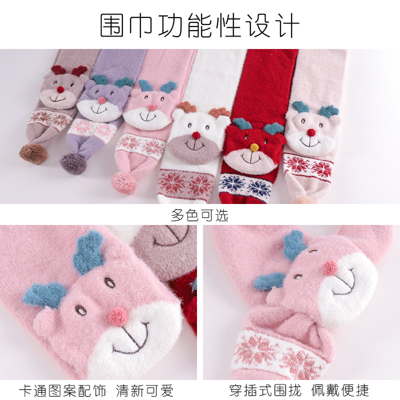 Scarves Women Winter Cute Korean version Students Cartoon Sun Girl Plush Thickening Warm Surround Neck Christmas Gifts