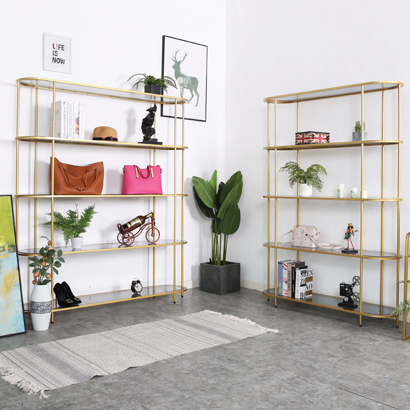 Clothing store multi-layer display rack coats, hats, shoes, bags, windows, island golden display racks, floor-to-ceiling decorative wrought iron racks