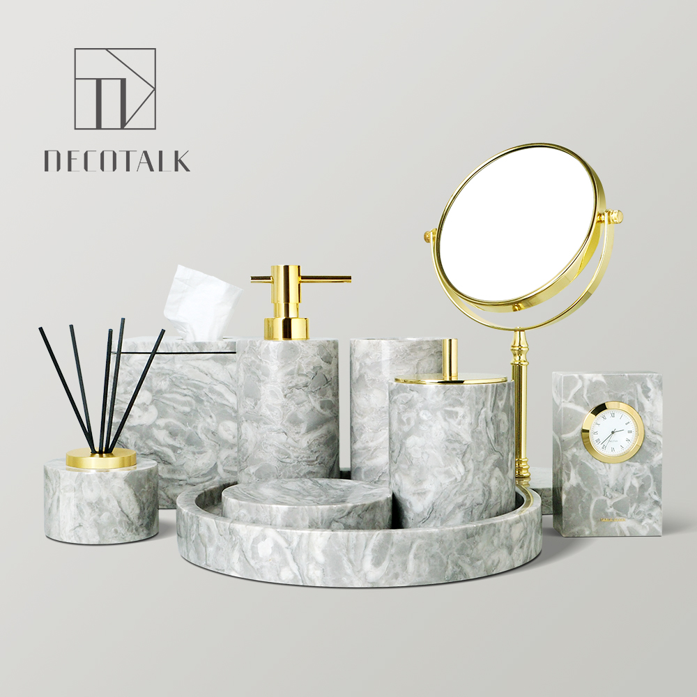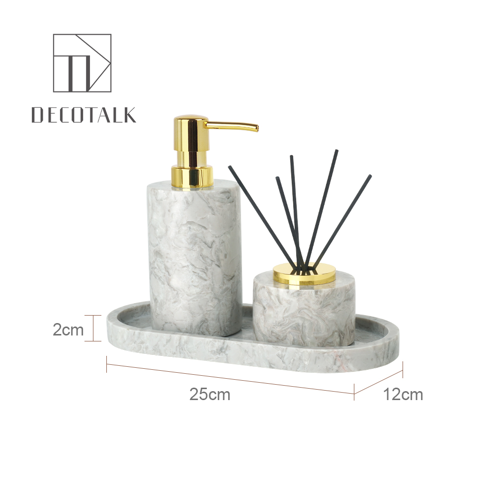 DecoTalk Nordic Grey Marble Bathroom Kit Press Hand Sanitizer Bottle Light Luxury Bathroom Tray
