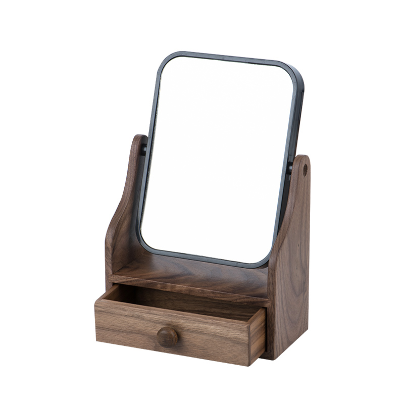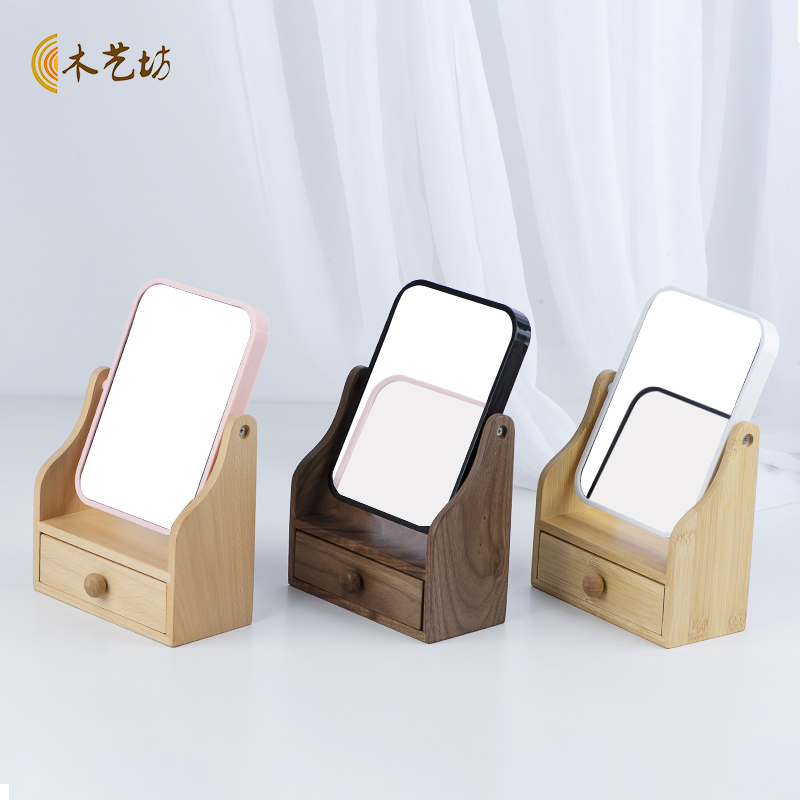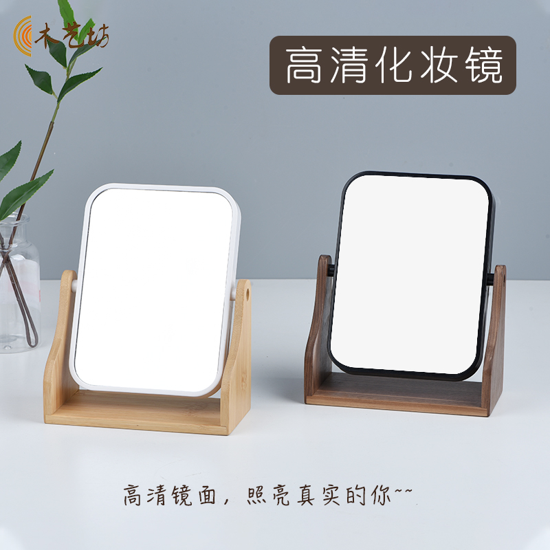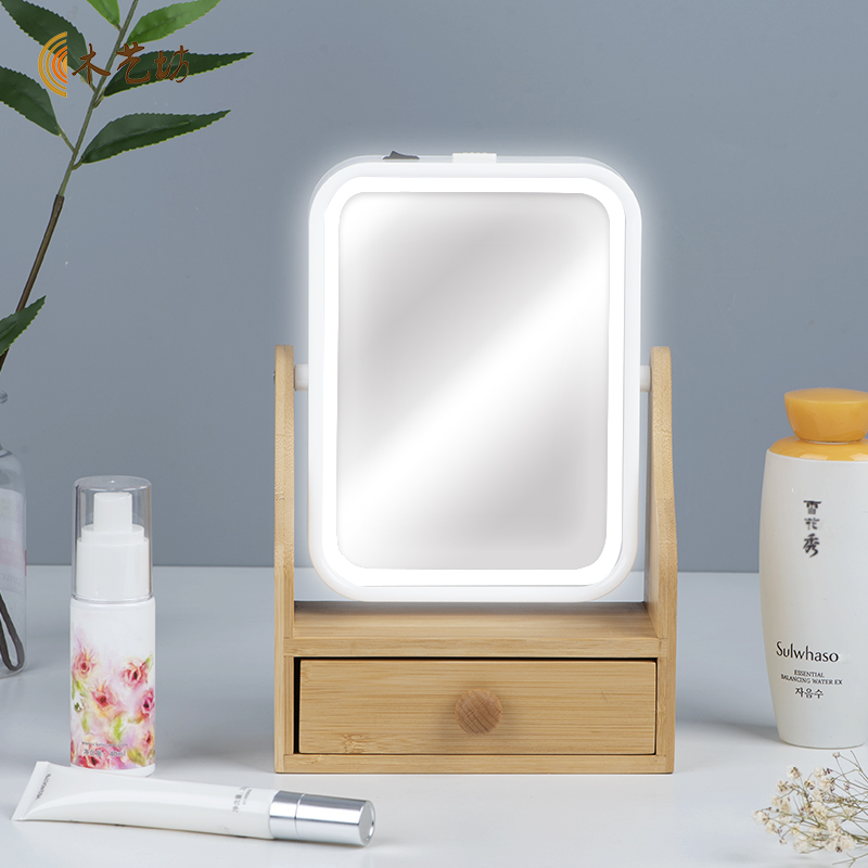 Desktop LED Light Bifacial Mirror Cosmetic Mirror Nordic Retro Square Makeup Mirror Solid Wood Incorporated Beauty Cosmetic Mirror