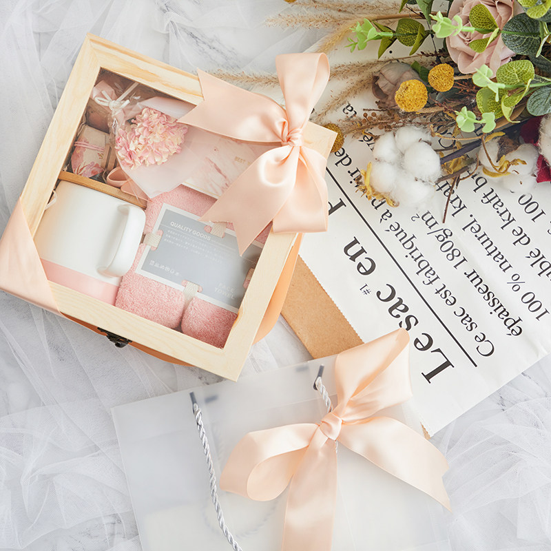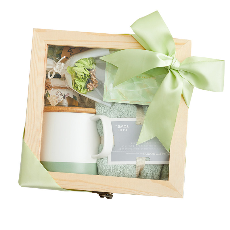 Green Pink Mori Ensemble Wood Case Frosted Salute Bag Day Style Gift Towels Cup