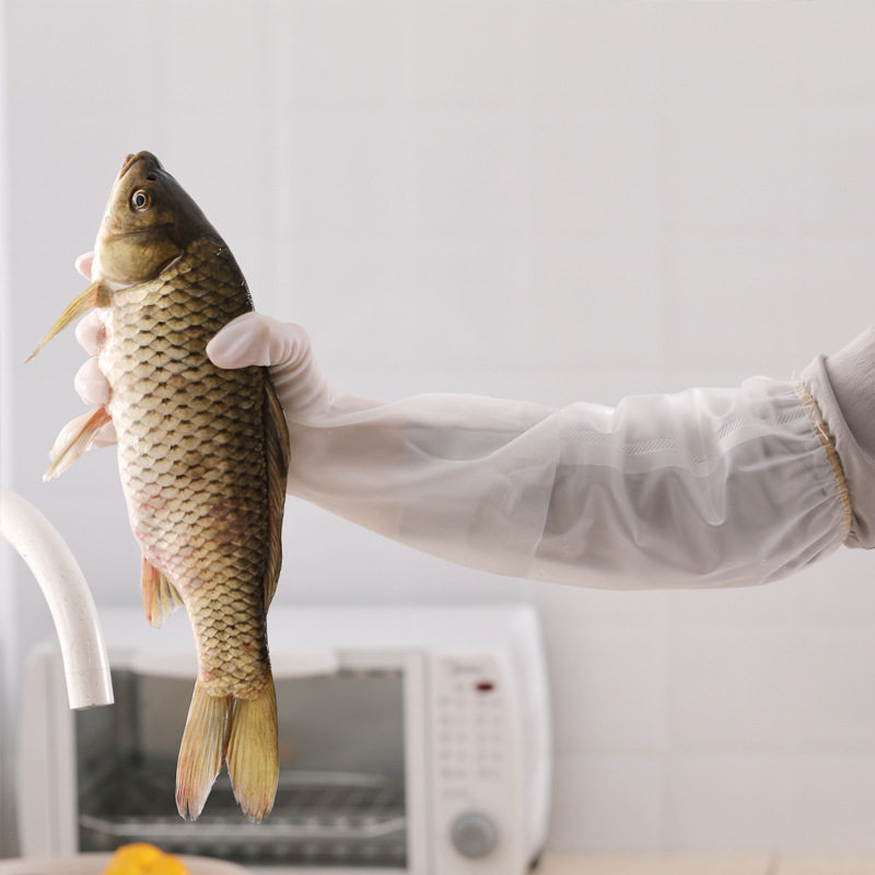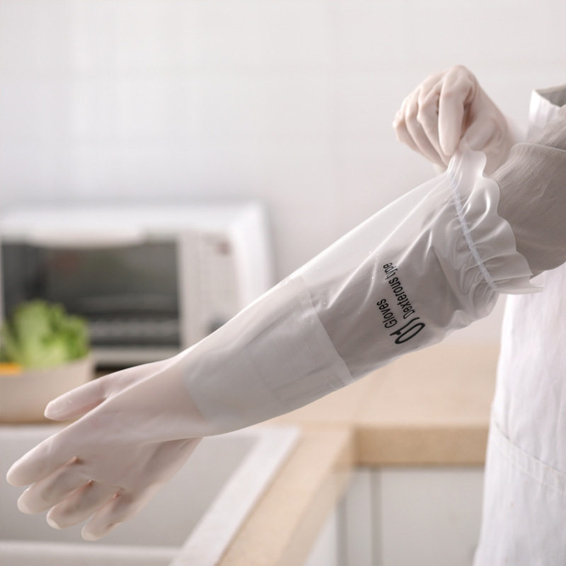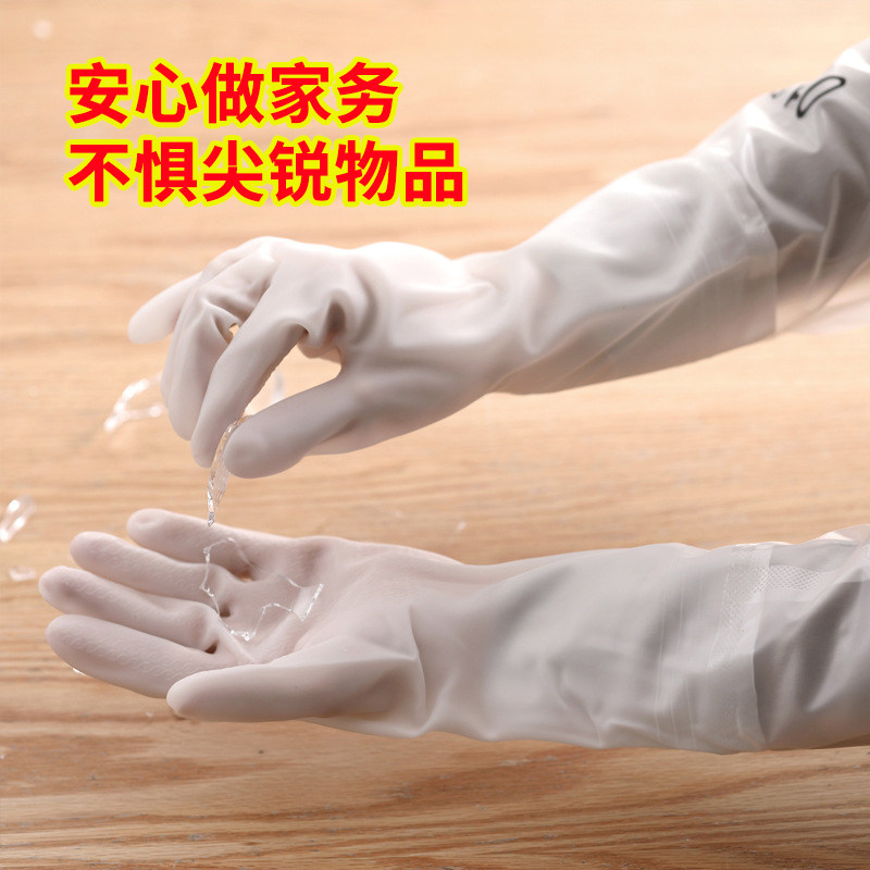 Durable dishwashing gloves Women washing clothes Kitchen housework winter rubber leather lengthened velvet waterproof cleaning artifact