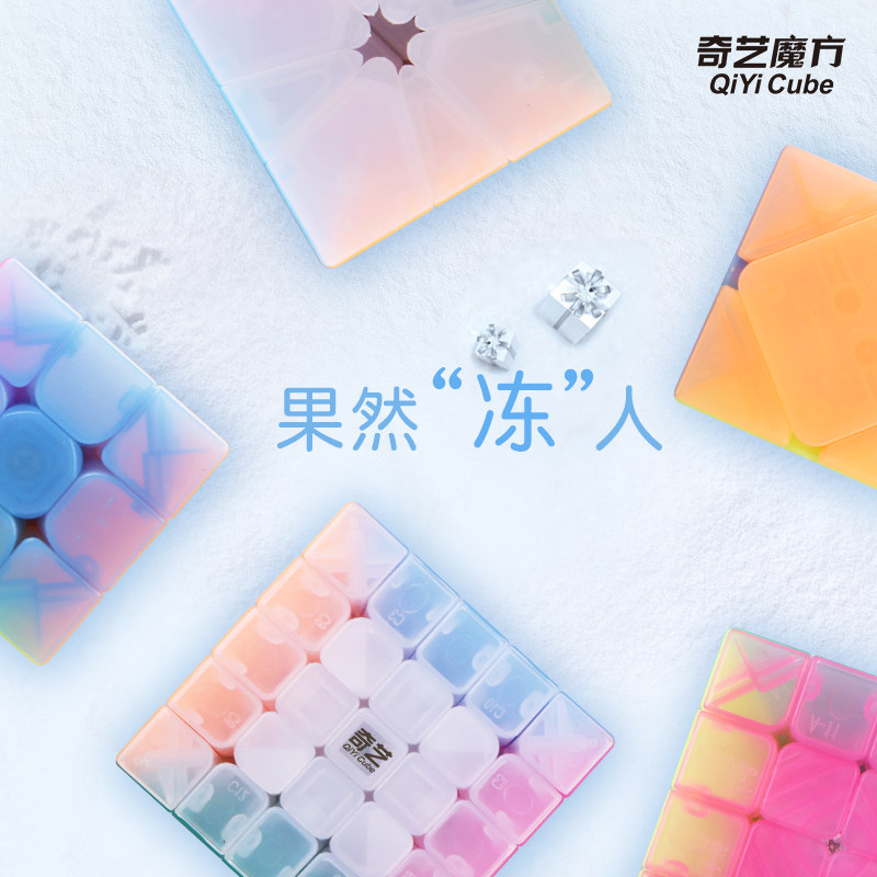Qiyi jelly color Rubik's Cube third-order special-shaped maple leaf pyramid set smooth children's student competition special toys