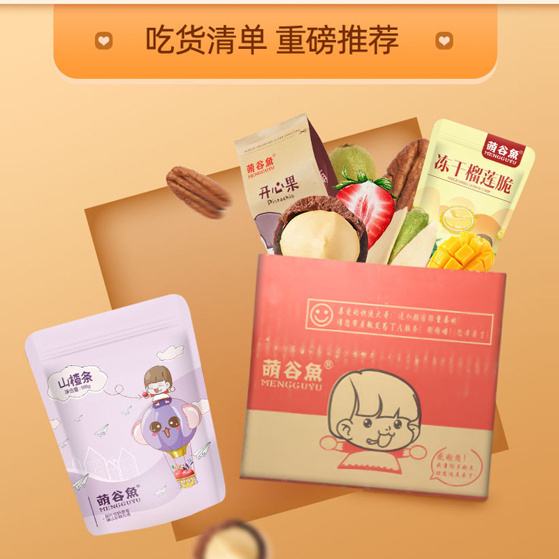 108g dried mango, 108g dried strawberry, 108g dried kiwi, 168g raisin, 30g strawberry crisp, 108g dried yellow peach, 168g hawthorn, 168g dried kiwi