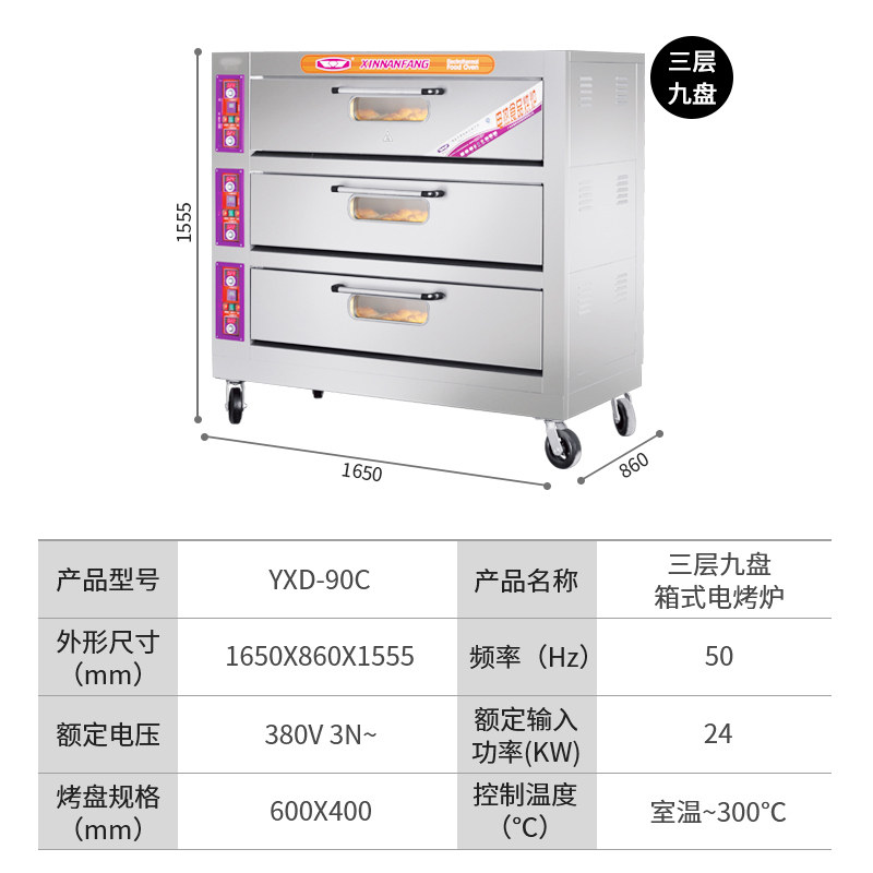 New South Oven Commercial Large Capacity Triple Nine Disc Electric Oven Mooncake Bread Pizza Oven 90C Manufacturer Direct